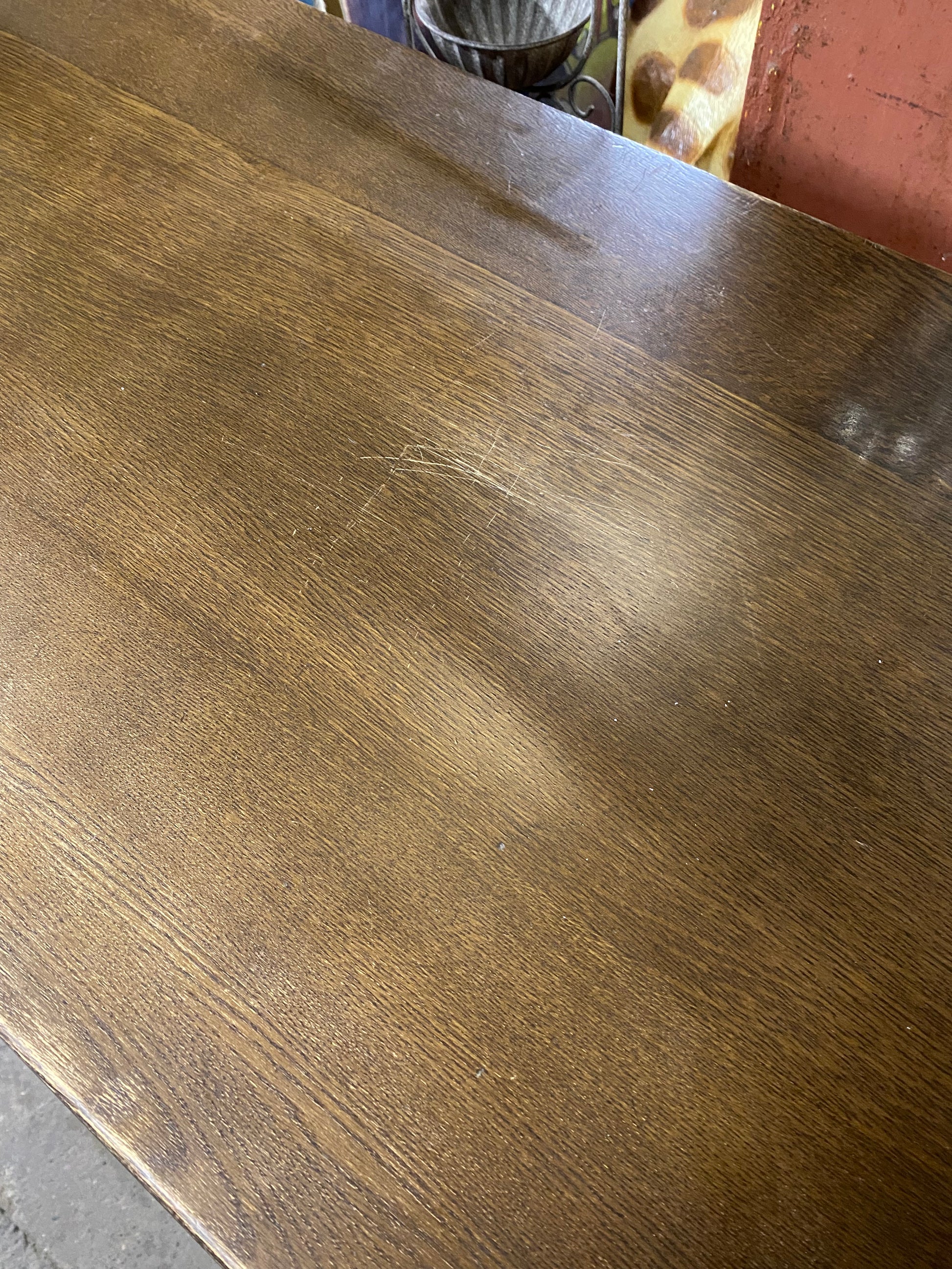 Condition report: some small marks and scratches along the front, also signs of wear / lighter wood patches along the edge at the top of the forward-facing section (see photos).