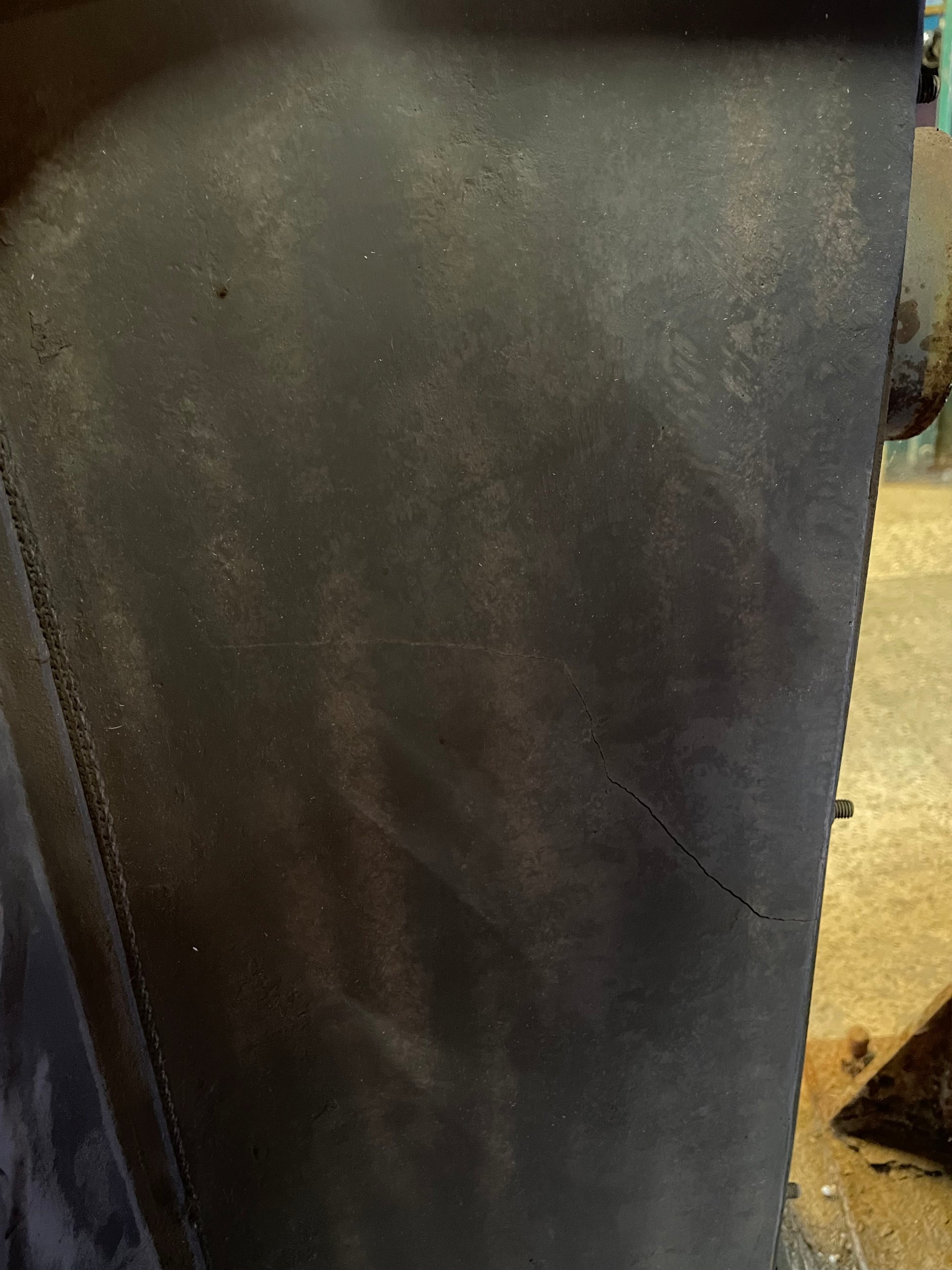 Additionally, we have noticed a crack along the back of the interior burner wall when taking a photo inside, but this is on the inside only and has not come through to the exterior wall to the rear. Additionally, there is another hairline crack on the exterior right-hand side of the burner, but this has not come through to the interior wall (see photos for close up).