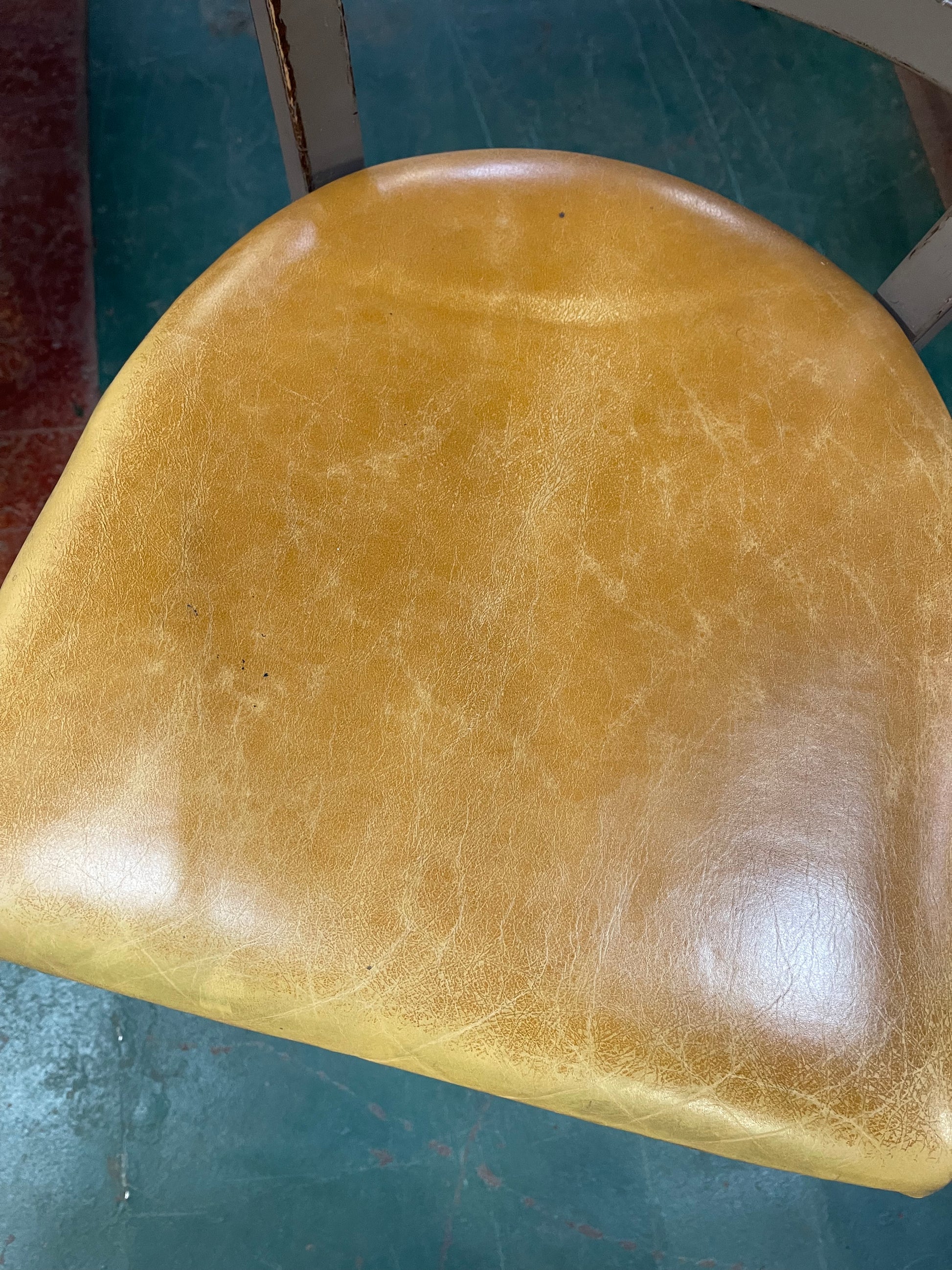 Please note that there are some small marks on the leather seat pads and the wooden frames are also showing signs of wear (see photos for close-ups). However, the grey paint style has been done in a manner that is intentionally rustic / distressed.