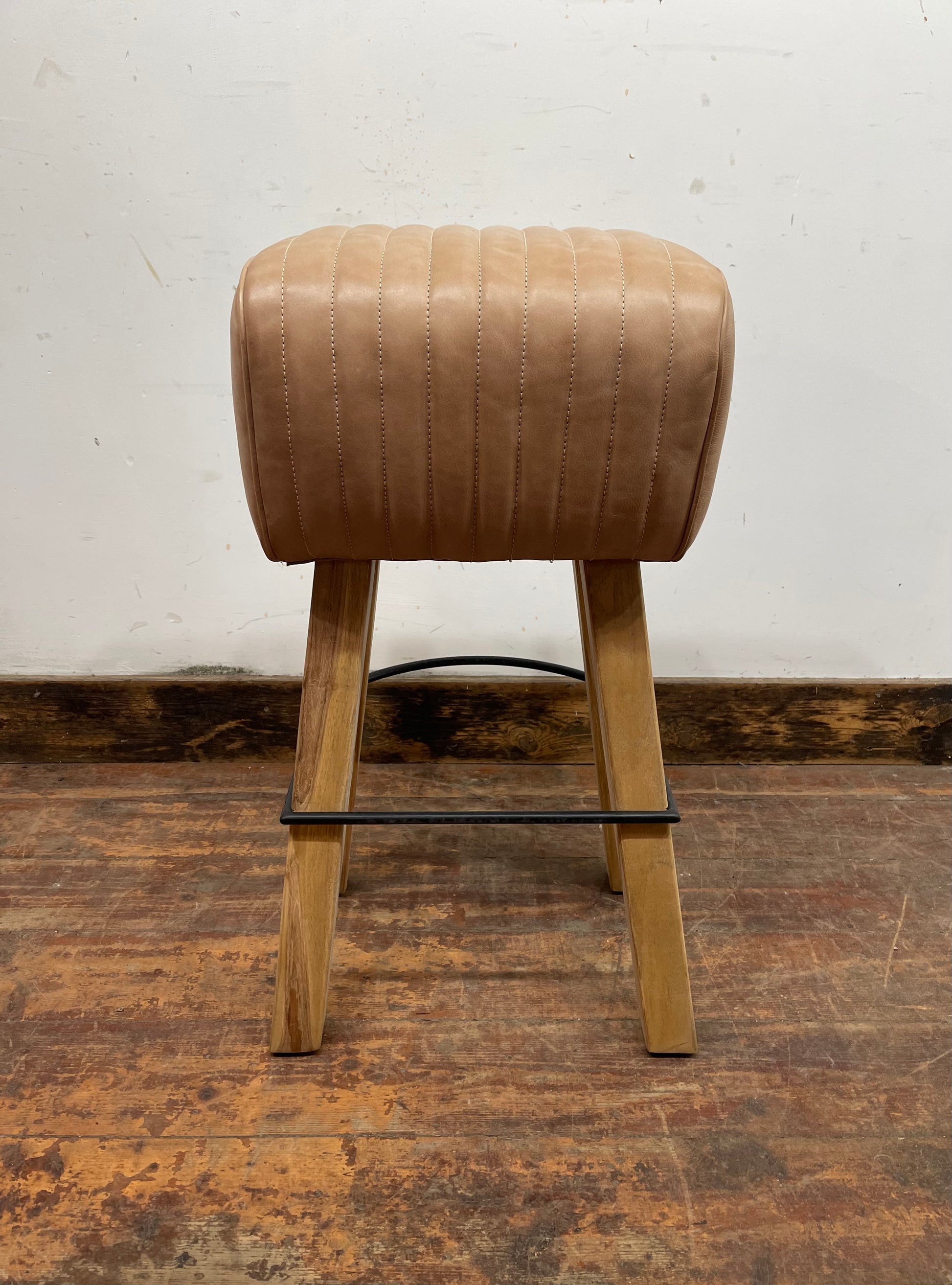 Pommel stool with light tan leather seat