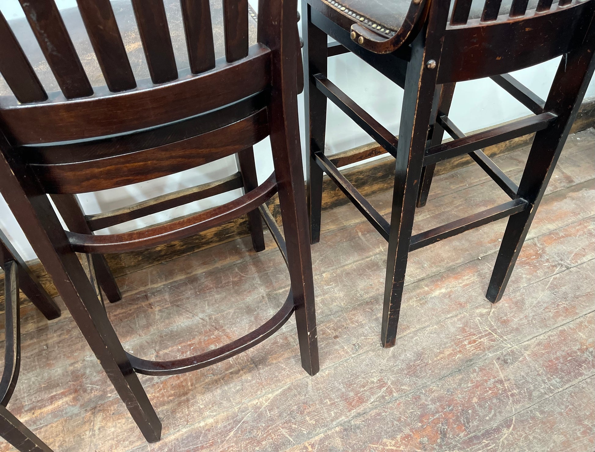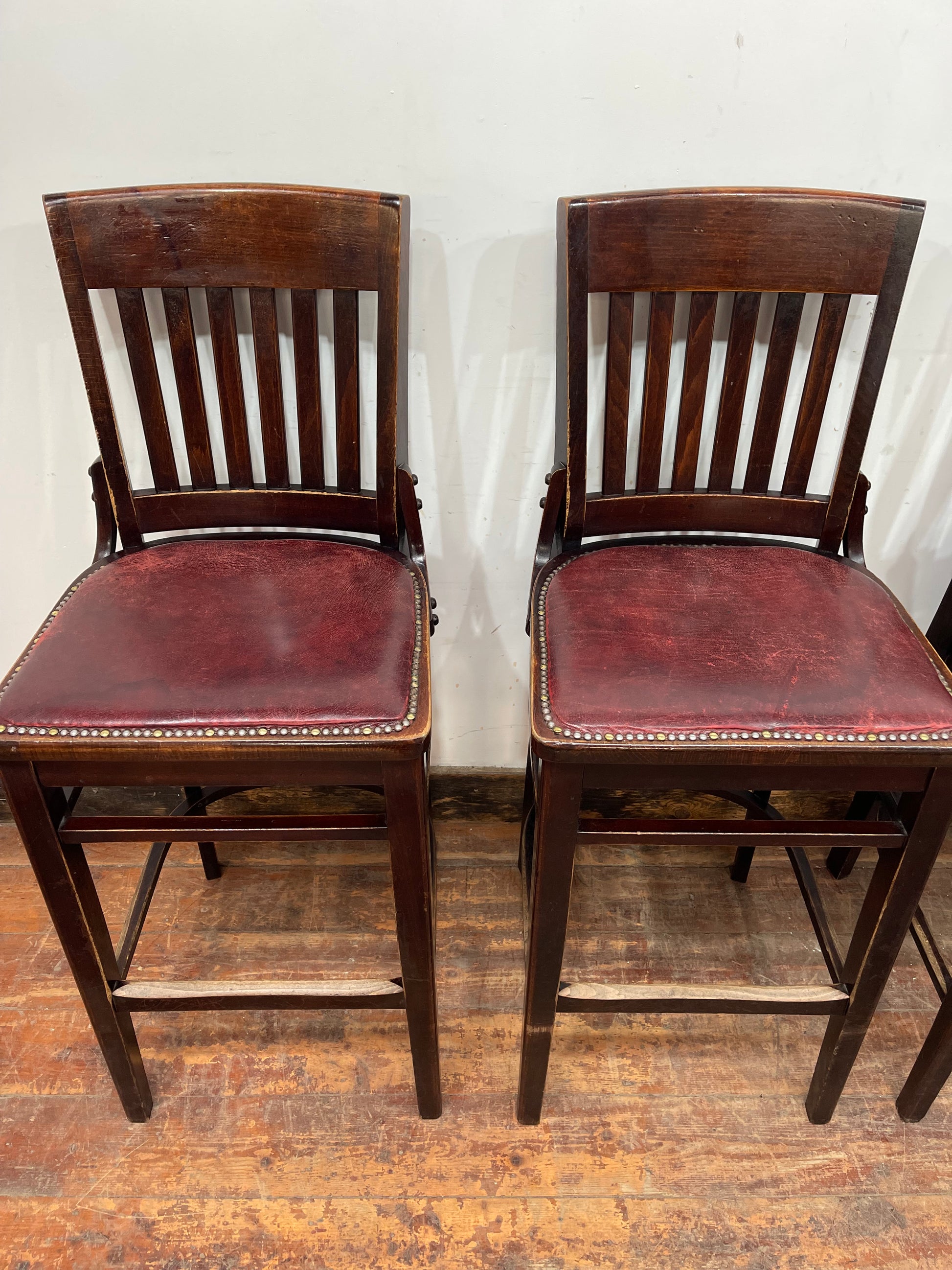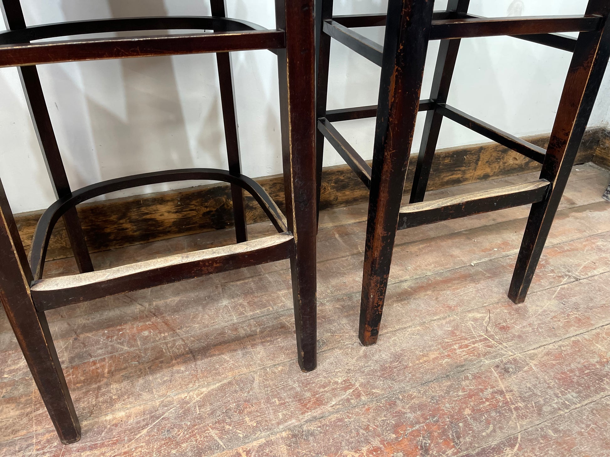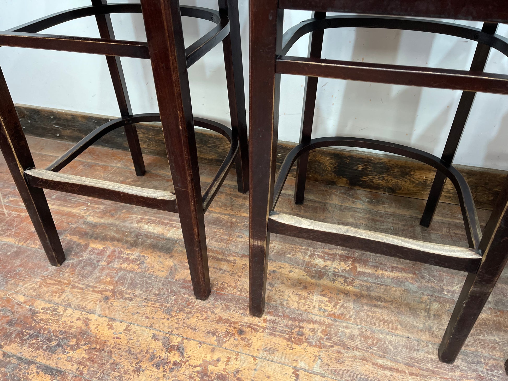 Please note that the bar stools could do with some TLC, as the frames and seat pads are marked / worn, but they will look perfect in a more rustic / period space. They are also extremely solid and sturdy, and comfortable to sit in too!