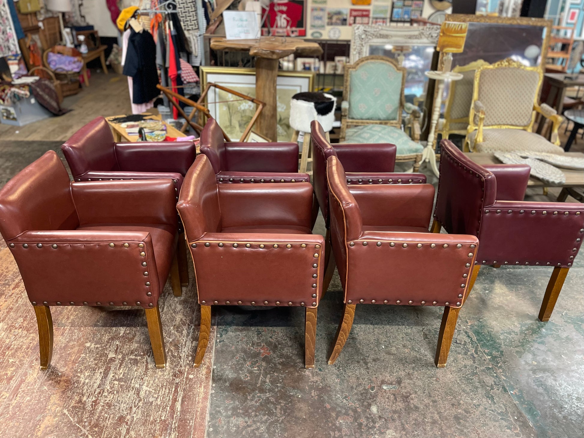 Set of 7 leather-effect tub chairs in two shades of red