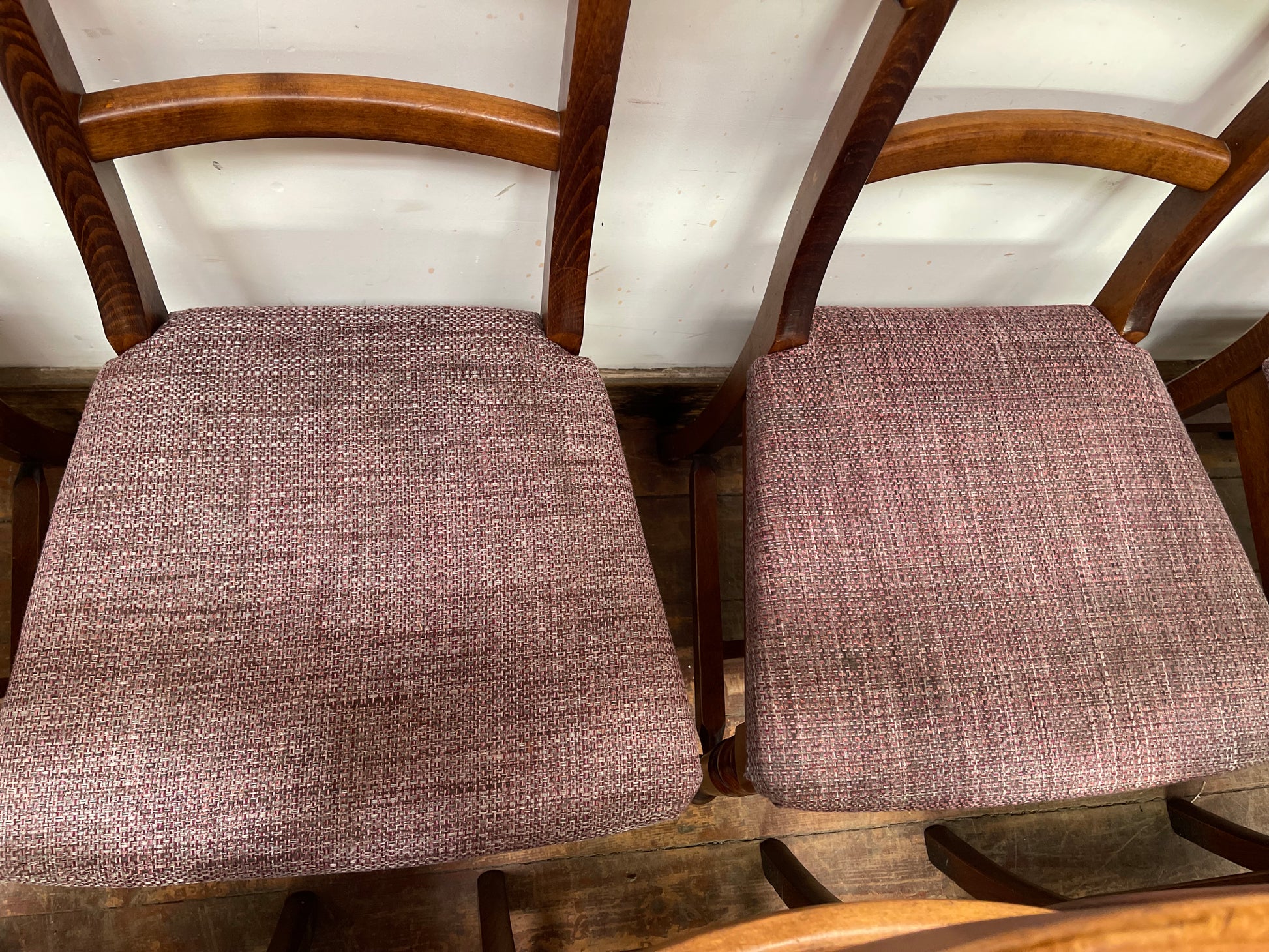 Please note that there are some marks on the seat pads in particular (see photos), and they would probably benefit from being recovered. However, the overall condition of these chairs is excellent and they have plenty of life left in them despite being second hand.