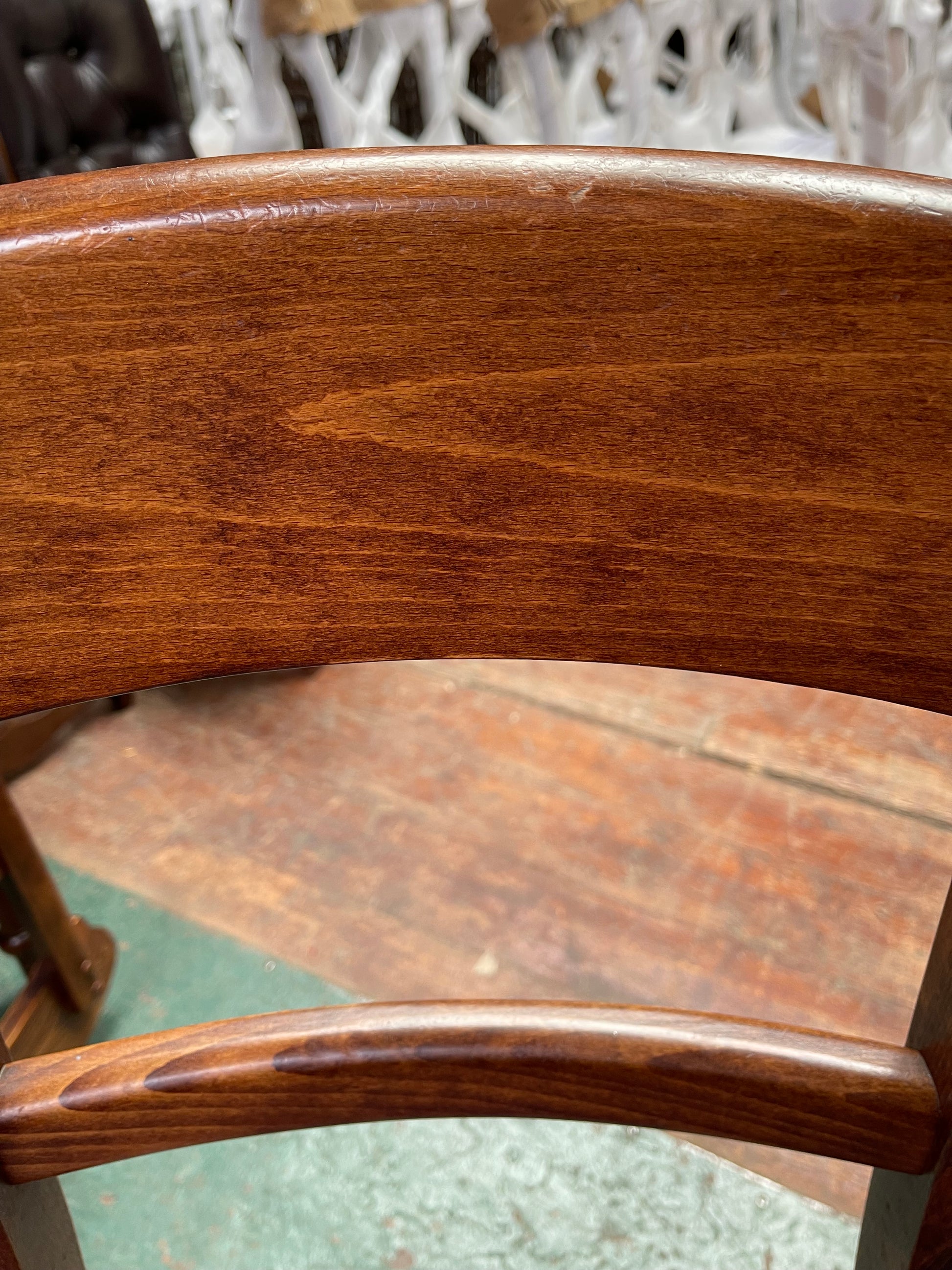 A set of 9 extremely solid and sturdy wooden chairs that would be perfect for frequent daily use in a pub / cafe / restaurant space. Featuring curved backrests and lovely detailing on the legs, a set of chairs like this don't come around very often!