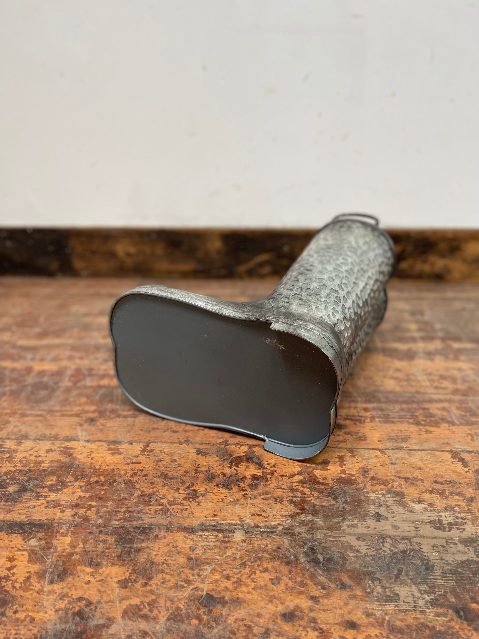 A lovely, quirky item; this simple yet stylish free standing umbrella stand has been crafted from silver metal and shaped to look like a pair of wellington boots.