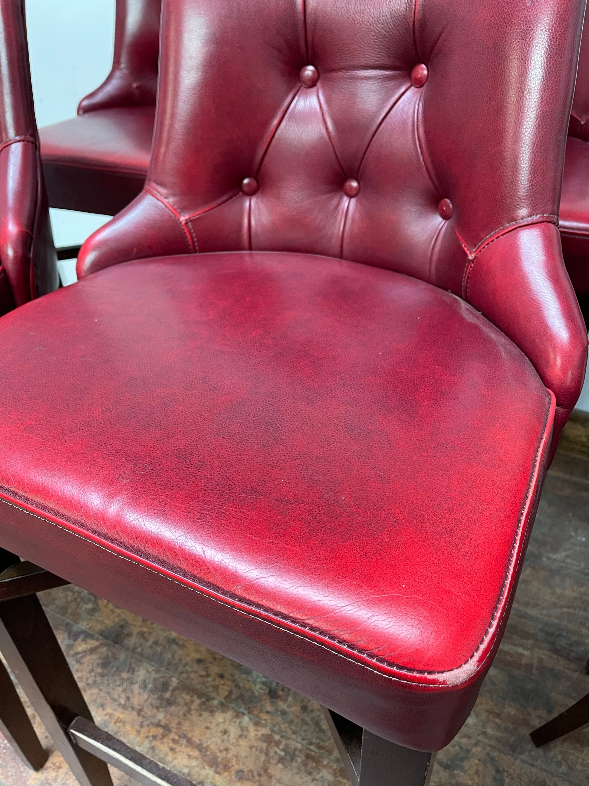 Stunning set of 6 red leather pub bar stools