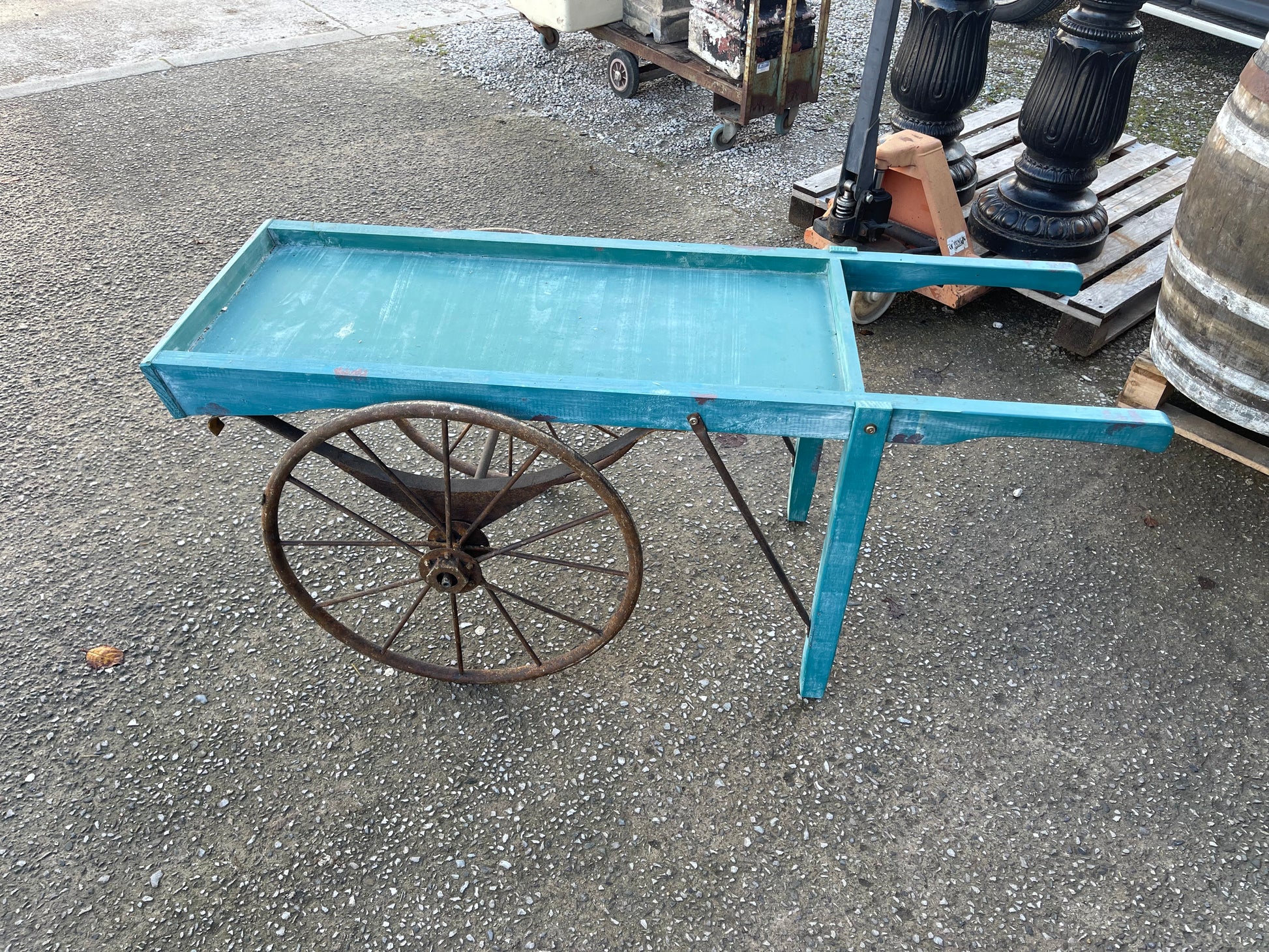 We have four of these brightly coloured, ex-display handcarts currently available, perfect for a shop or hospitality space that's looking for a display feature that's also easy to move. Each handcart is quite light and easy to manoeuvre by picking up the handles and pushing it along to the desired location.